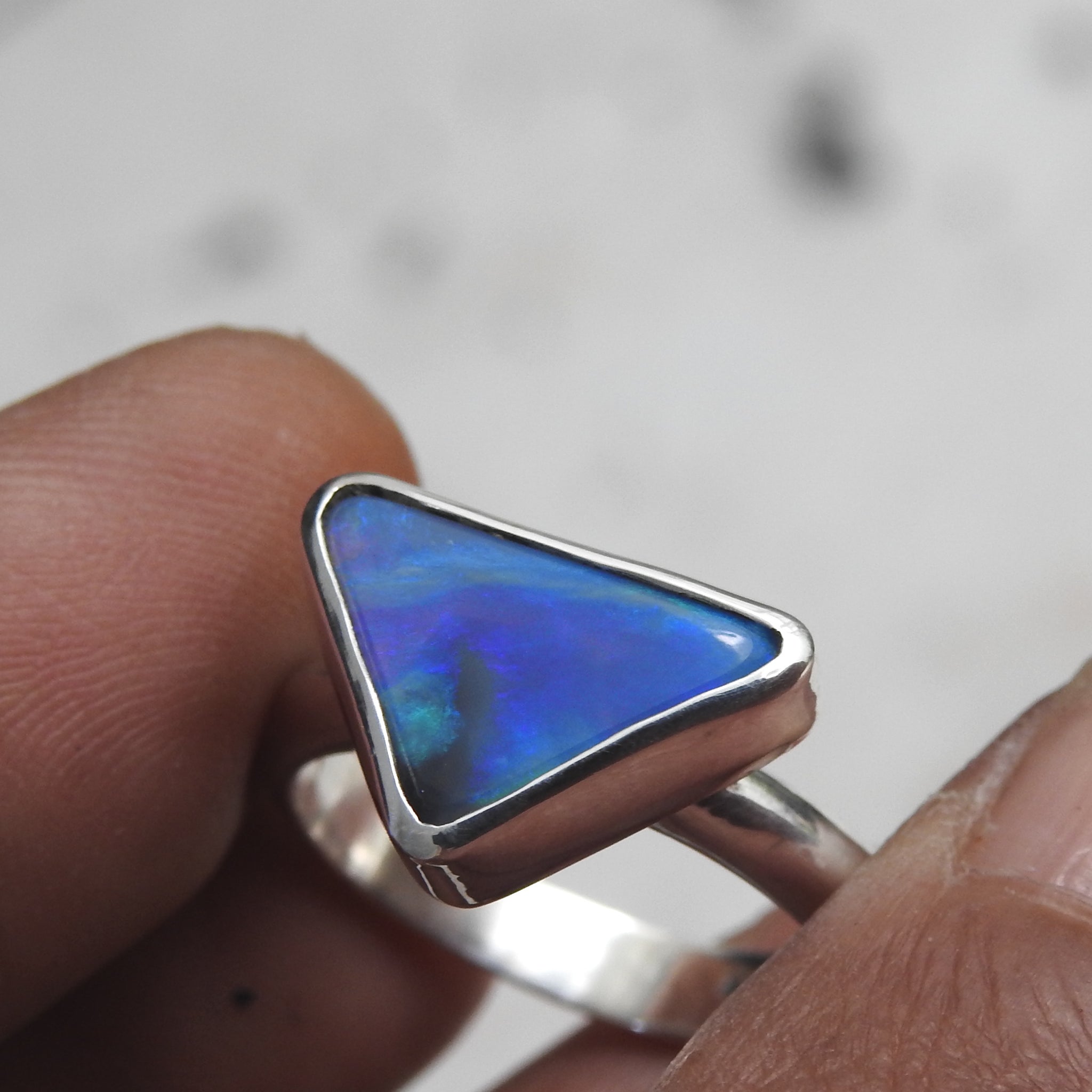 Lightning Ridge Solid Opal Sterling Silver Ring.