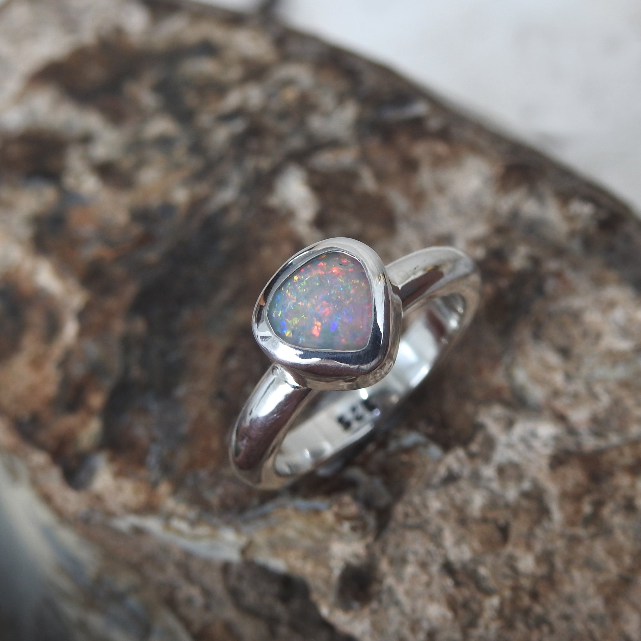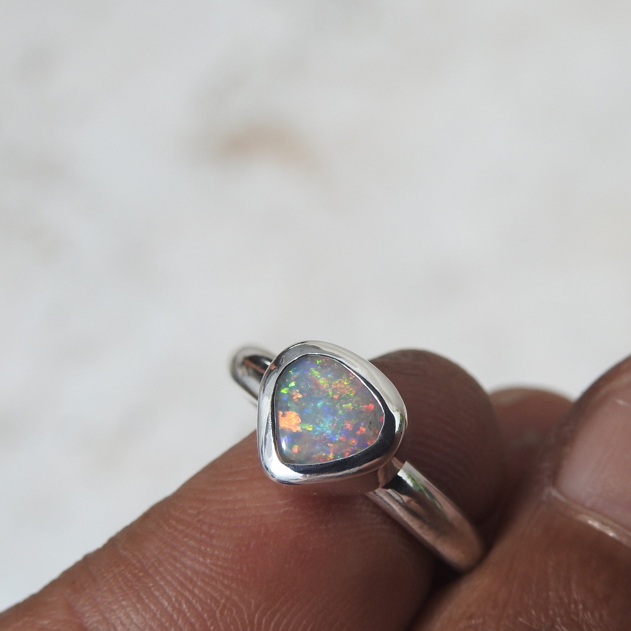 Natural Lightning Ridge Solid White Opal Sterling Silver Ring