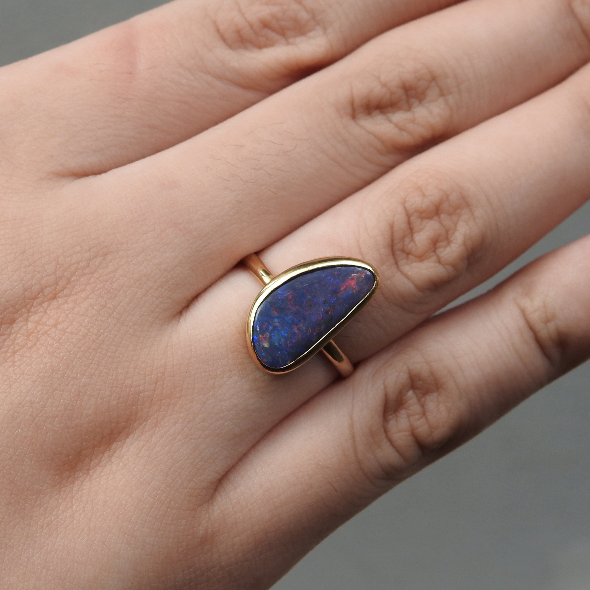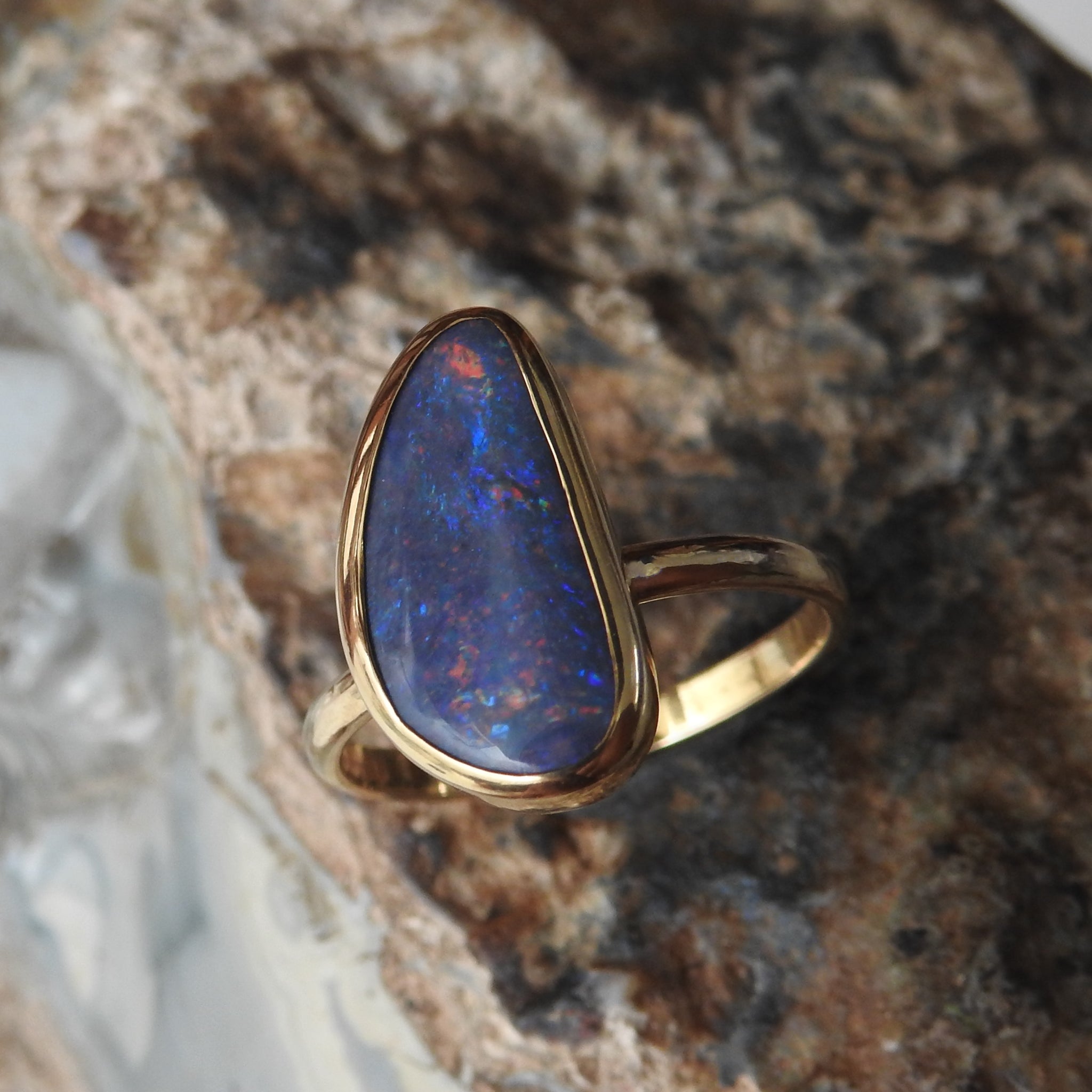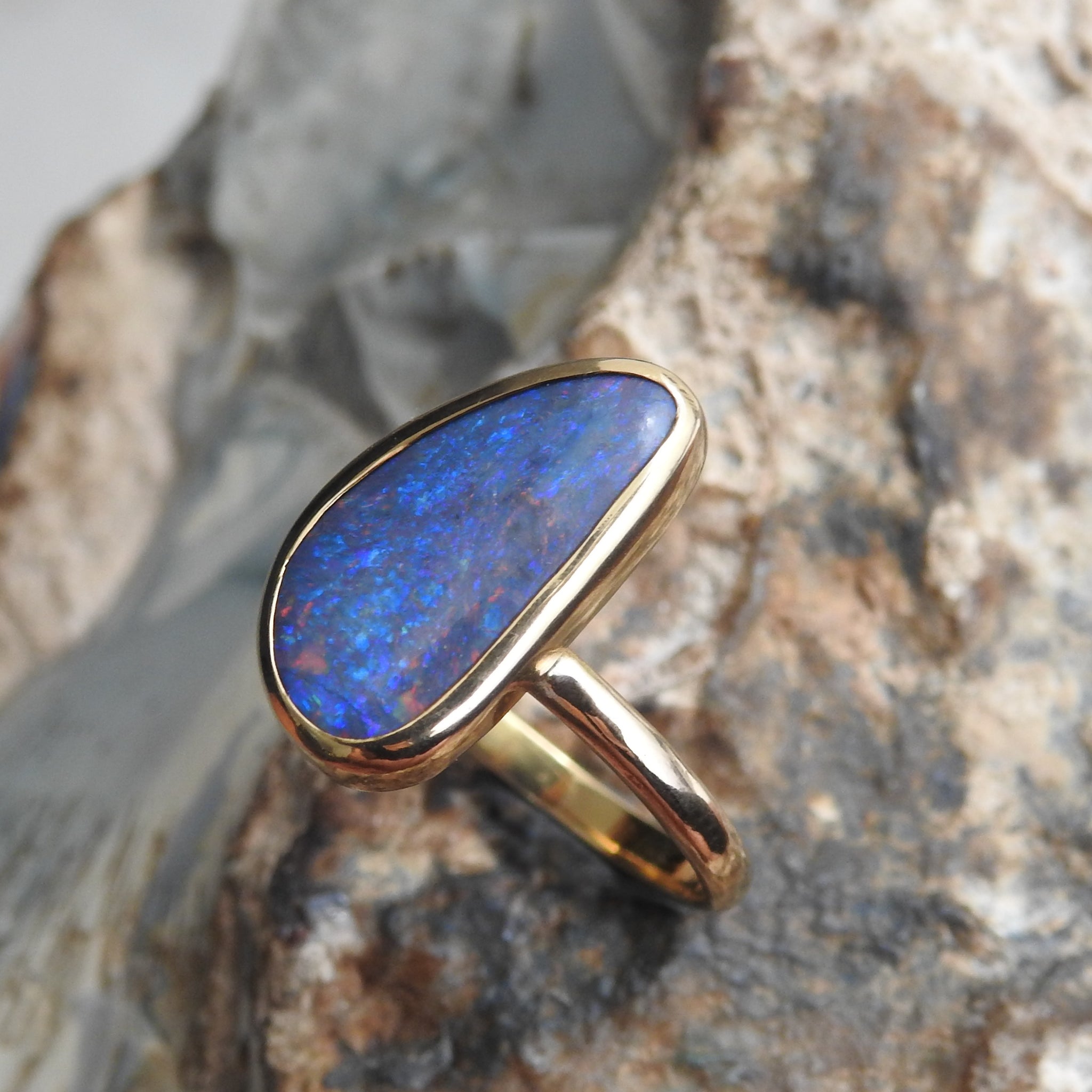 Australian Solid Natural Black Opal 10k Gold Ring